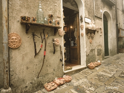 The Elymians had a number of towns in Western Sicily including hilltop Erice usually surrounded by clouds and overlooking the sea and plain below. This was the city sacred to Venus during classical times and a temple dedicated to the goddess of love once stood at the site of the Norman Castle. The winding streets today date back to the Middle Ages and the fragrance of freshly baked almond cookies and local fish couscous is usually in the air. Small local boutiques add to the beauty of Erice with their colorful ceramics, coral jewelry, geometric patterned rugs and of course delicious almond pastries.