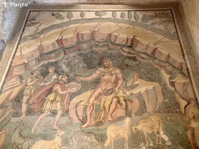 Near the medieval hill town of Piazza Armerina, surrounded by fertile fields of wheat, is the Roman Villa del Casale famous for its incredibly well-preserved mosaic floors dating back to the 4th century AD (CE). This was once the home of a powerful Roman landowner and the rooms, baths and fountains that are still standing cast a glimpse into the wealth and luxury of past times. Almost every room and hall is decorated with colorful mosaics making this the villa with the major amount of Roman mosaic decorations in the world. Among the most memorable stories illustrated on the floors are the girls in bikinis, the myth of Hercules and the mildly intimate lovers’ scene.